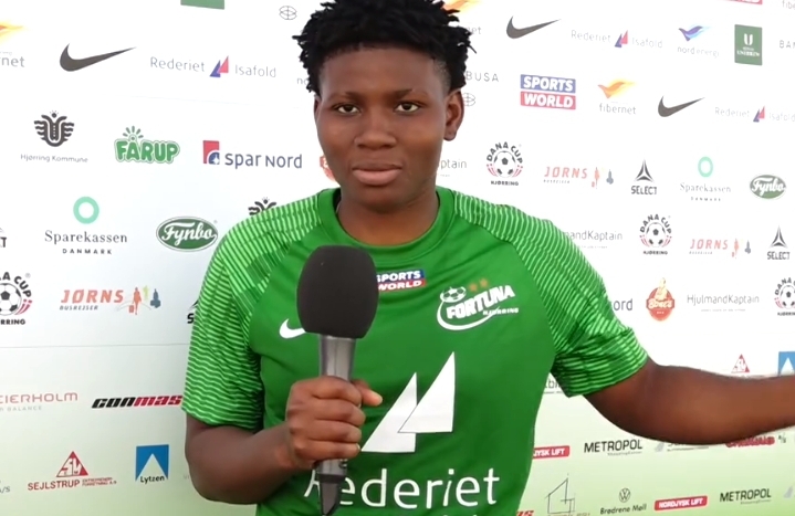 The A-Liga Women encounter saw the Super Falcons prospect score the first and third goals as Fortuna dismantled Aarhus 4-0 at the Nord Energi Arena.