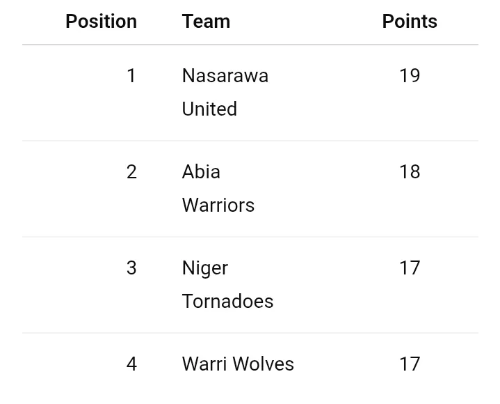 Standings_ A Close Race for Top Spot After NPFL Matchday 10